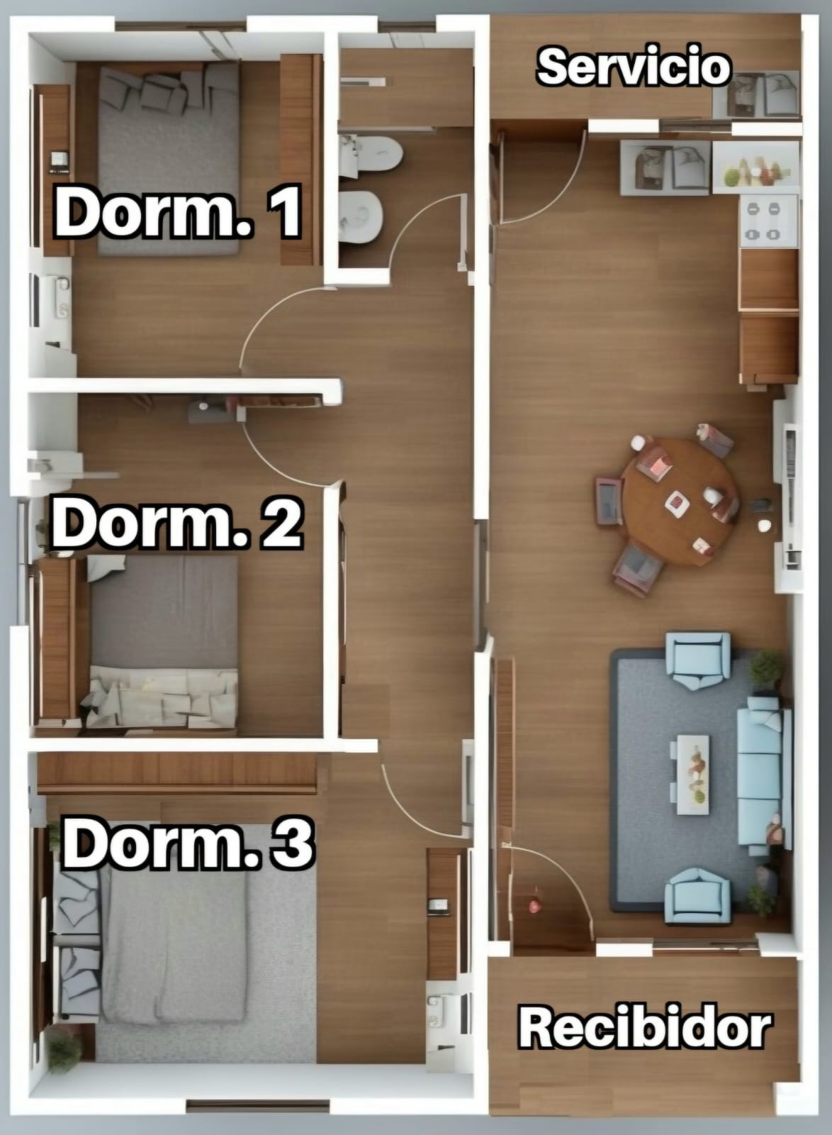 Construcción de 80mts2: 2 amplios dormitorios, 1 sala, 1 cocina comedor, totalmente amurallada.