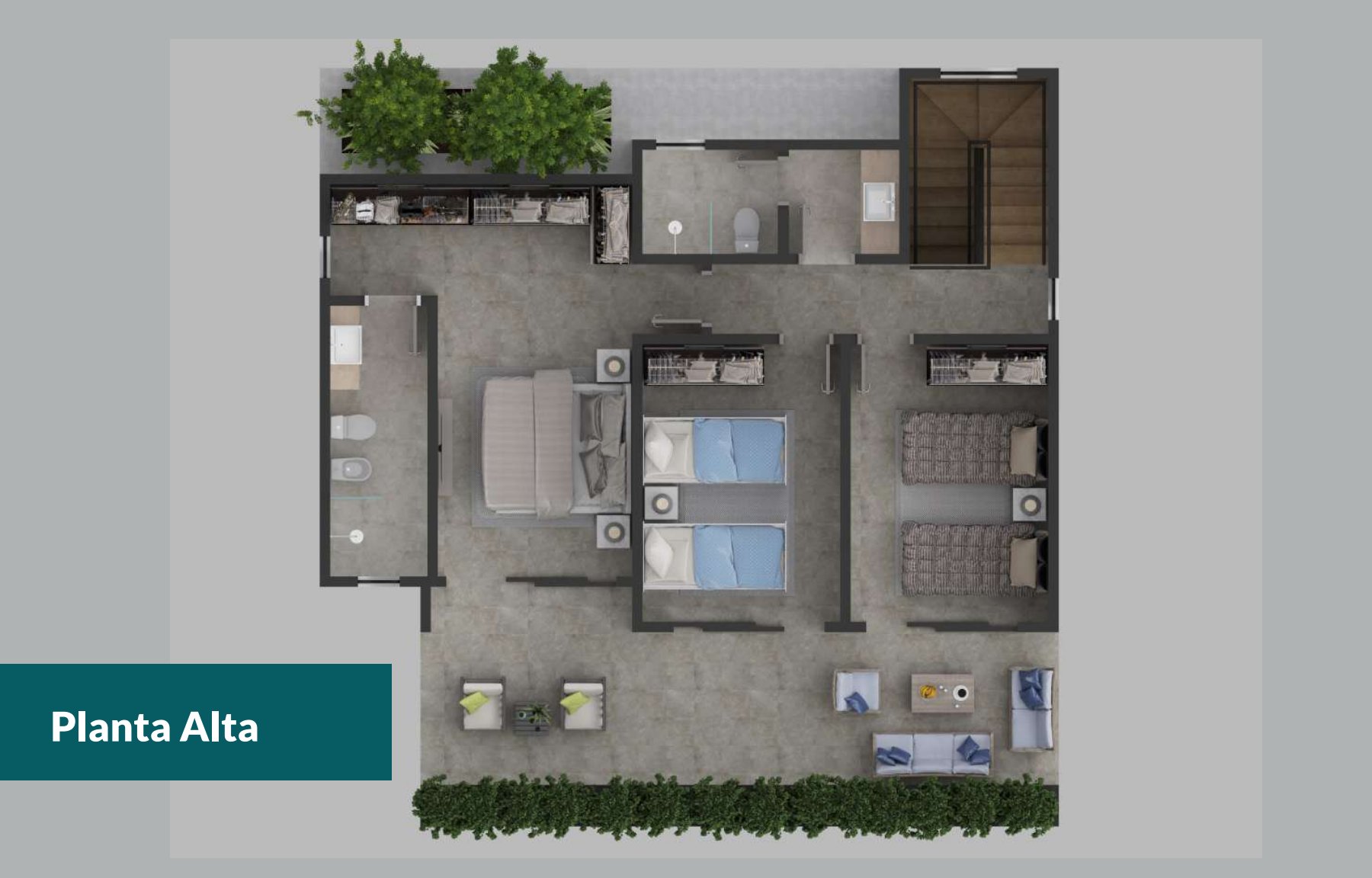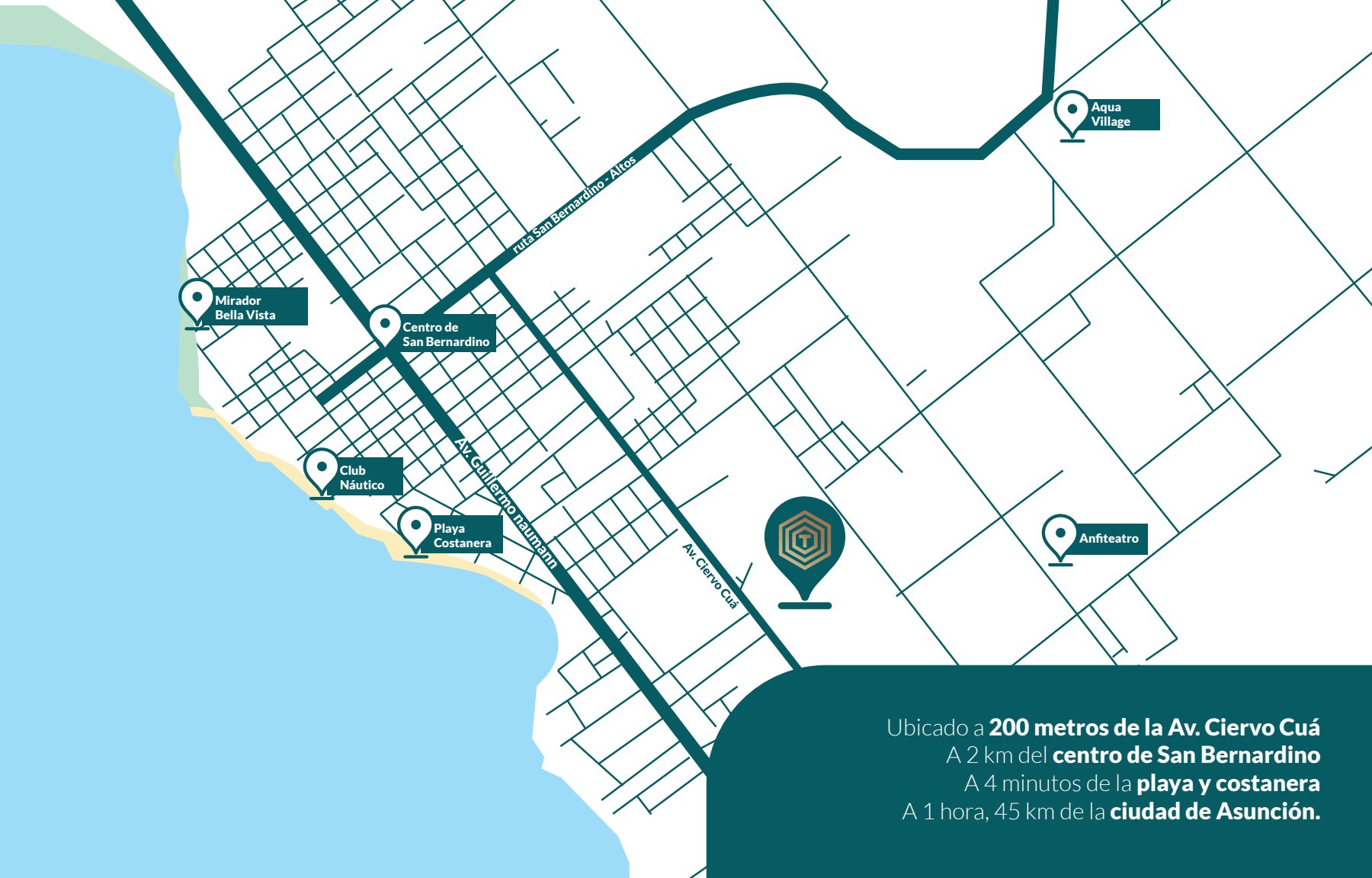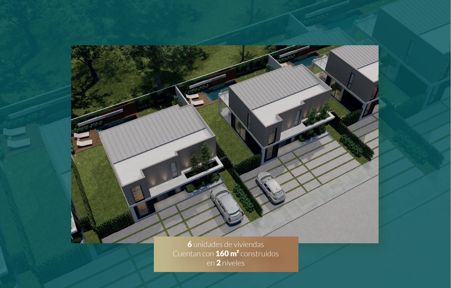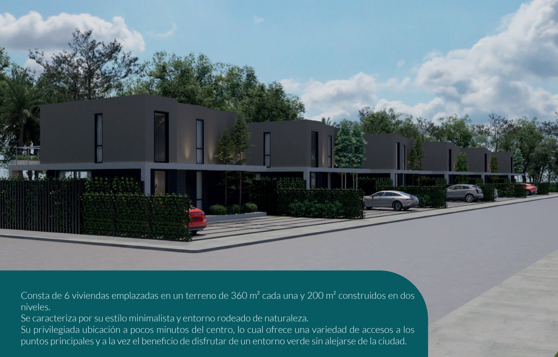 Desarrollo exclusivo en Ciervo Cuá, San Bernardino, con unidades de 200 m² sobre terrenos de 12 x 30 m. Cada casa ofrece un diseño moderno con hall de acceso, toilette social, sala, comedor y cocina integrados en un concepto abierto que conecta con un quincho con parrilla y galería al patio con piscina y solárium. En planta alta, el dormitorio principal cuenta con baño en suite y vestidor, acompañado de dos dormitorios adicionales, baño compartido y una amplia terraza con vista al entorno natural.